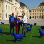Die blaue Friedensherde grast bis 18 Uhr im Schlosshof und wartet auf Besucher