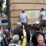 Bilder von der Anbringung der Gedenktafel an der Außenwand des Hotels Silber