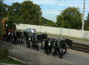 Die Brauereigespanne auf dem Weg zum Cannstatter Wasen + Volksfestumzug