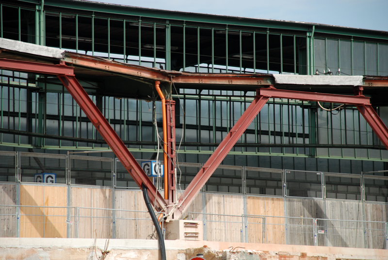 Es ist verwunderlich, dass das Bahnhofsdach nicht zuerst gesichert und seine Standfestigkeit verstärkt wurde und erst danach der Südflügel abgerissen wurde, sondern dass dies gerade umgekehrt geschah.
